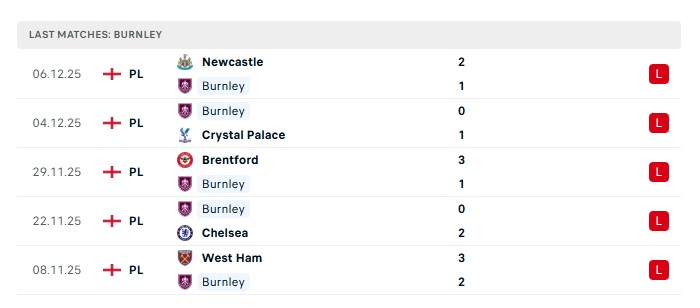 - Phong độ gần đây Burnley