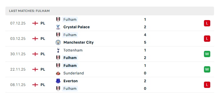 - Phong độ gần đây Fulham