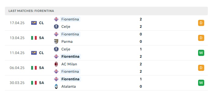 - Phong độ gần đây Fiorentina