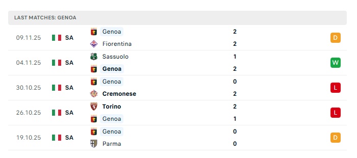 - Phong độ gần đây Genoa