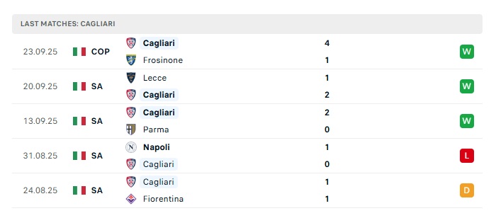 - Phong độ gần đây Cagliari