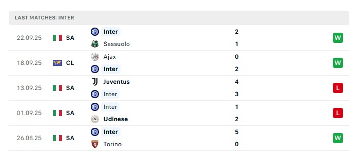 - Phong độ gần đây Inter Milan