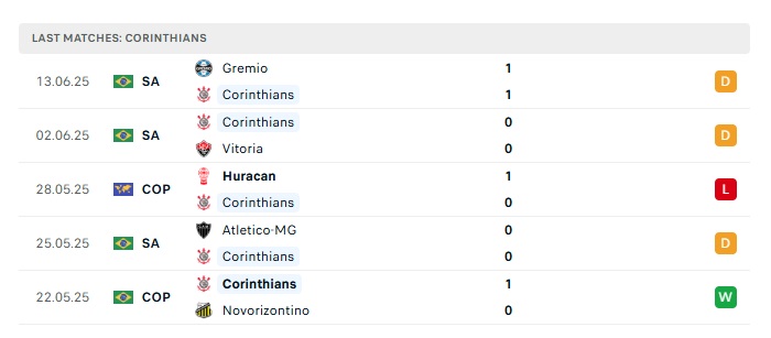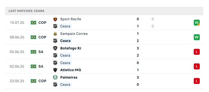 Phong độ gần đây Ceara  vs Corinthians/SP