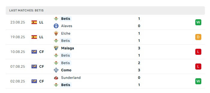 Đều đã ra sân 2 lần ở mùa giải mới 25/26 này nhưng Celta Vigo vẫn có một kết quả thi đấu rất tệ và họ đứng trước một áp lực khổng lồ trước đối thủ. Tính trong 2 trận đã qua, Betis thi đấu không tệ và đã có được 4 điểm, đứng thứ 2 trên BXH. Trong khi đó, Celta Vigo bất ổn hơn khi đứng thứ 13 với chỉ 1 điểm sau 2 trận. Như vậy, khả năng để đội chủ nhà có chiến thắng trong ngày hôm nay sẽ rất khó xảy ra.