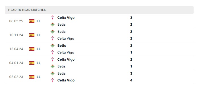 - Kèo tỷ số H2 Celta Vigo vs Betis: 0-1