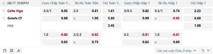 Soi kèo châu Á, kèo Celta Vigo vs Getafe