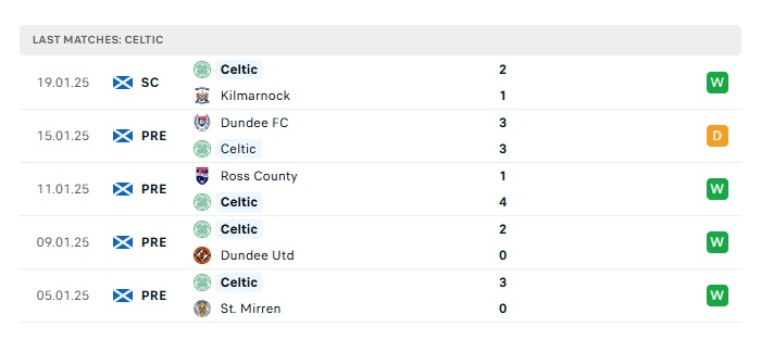 • Phong độ gần đây Celtic
