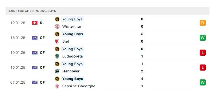 • Phong độ gần đây Young Boys