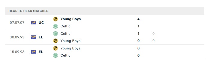 Lịch sử đối đầu Celtic vs Young Boys