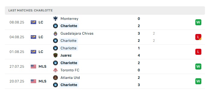 Phong độ gần đây Cincinnati  vs Charlotte FC