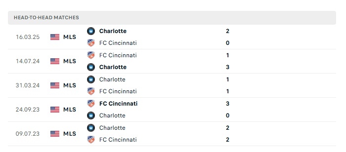 Lịch sử đối đầu Cincinnati vs Charlotte FC