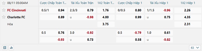 Soi kèo châu Á, kèo Cincinnati vs Charlotte FC