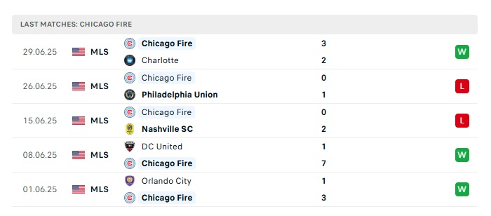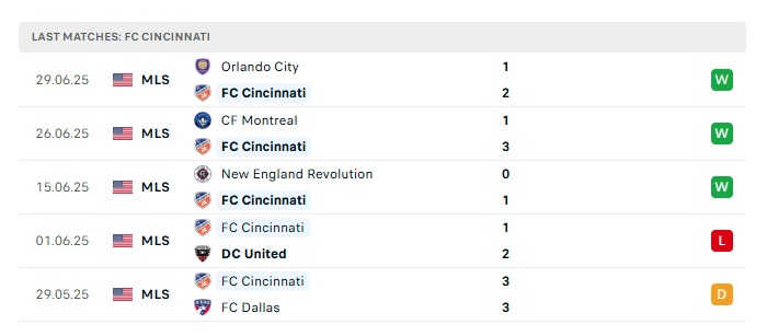 Phong độ gần đây Cincinnati vs Chicago Fire