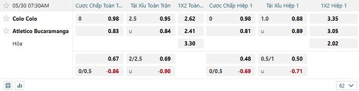 • Kèo tỷ số H1 Colo Colo vs Bucaramanga: 0-0