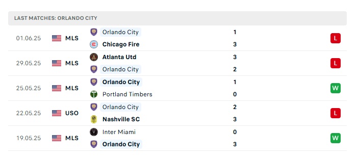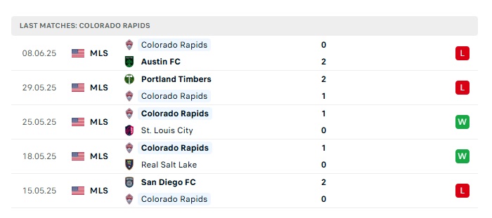 Phong độ gần đây Colorado Rapids vs Orlando City