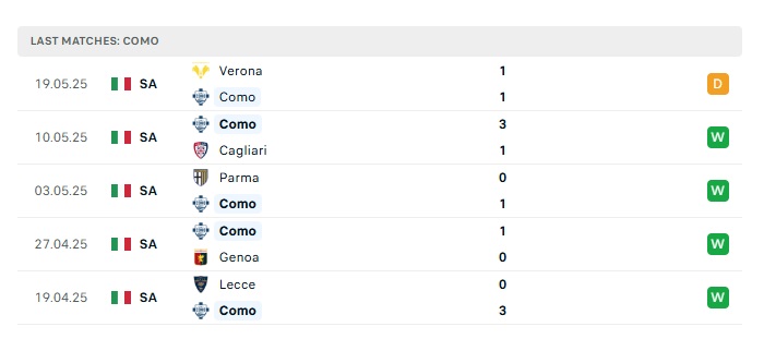 Nên biết rằng phong độ thi đấu hiện tại của Como đang tương đối tốt nhưng họ đã hết mục tiêu. Cụ thể hơn thì đội chủ nhà Como lúc này đang có chuỗi 5 vòng đấu liên tiếp bất bại với 4 thắng và 1 hòa. Trong khi đó thì Inter Milan đang có cho mình 3 trận liên tiếp bất bại cùng 2 chiến thắng và 1 hòa. Như vậy thì nếu đội khách thực sự tập trung, họ sẽ thừa khả năng có 3 điểm trước đối thủ.
