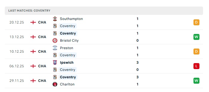 - Phong độ gần đây Coventry