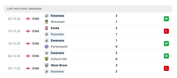 - Phong độ gần đây Swansea City