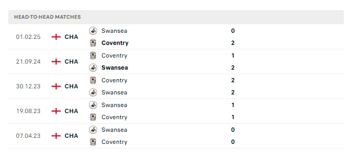 Lịch sử đối đầu Coventry vs Swansea City