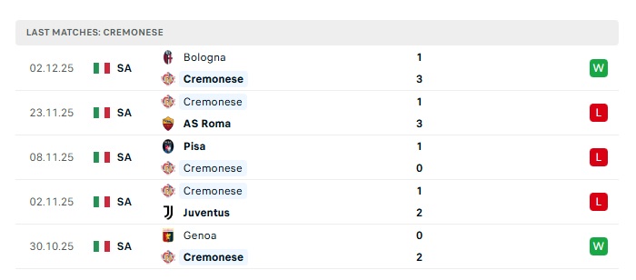 Đang có phong độ thi đấu ổn định cùng lợi thế sân nhà, Cremonese rõ ràng tự tin đánh bại Lecce ở vòng đấu này. Hiện tại, chủ nhà Cremonese đang có mặt ở vị trí thứ 11 trên BXH cùng với 17 điểm sau 13 vòng. Trong khi đó thì Lecce đang chỉ có được vị trí thứ 14 trên BXH với 13 điểm. Như vậy thì rất rõ ràng, nếu chơi quyết tâm, 3 điểm với Cremonese không phải là quá khó.