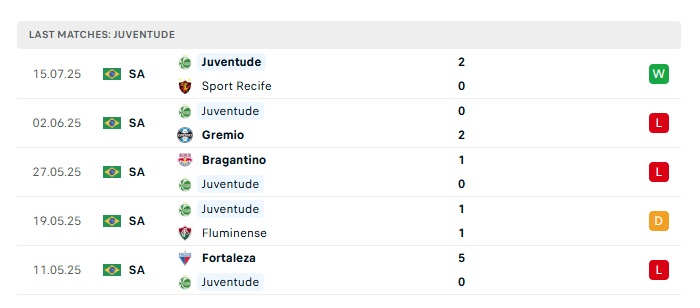 Tất nhiên là với vị trí trên BXH như vậy thì chắc chắn phong độ thi đấu của hai đội có sự chênh lệch rất lớn. Trong 5 trận đấu gần nhất của Cruzeiro, họ đã bất bại với 3 chiến thắng và chỉ hòa 2. Trong khi đó thì Juventude lúc này đang có 1 thắng, 1 hòa và 3 thua trong 5 lượt trận gần nhất. Qua đó, đội chủ nhà ngày hôm nay sẽ có cho mình 1 chiến thắng áp đảo toàn diện trước đối thủ.