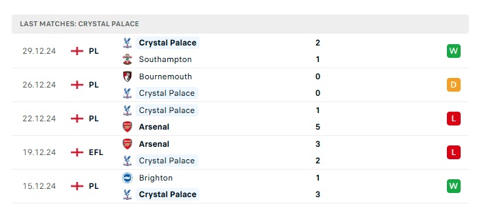 - Phong độ gần đây Crystal Palace