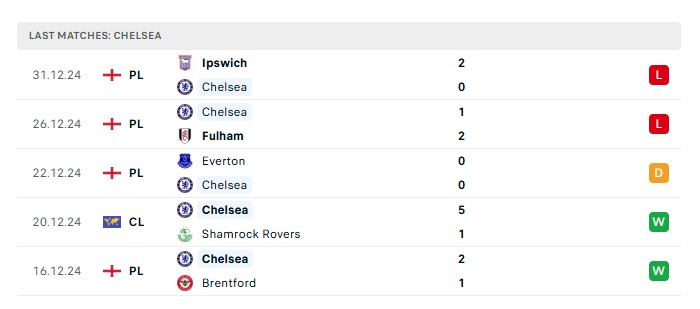 - Phong độ gần đây Chelsea