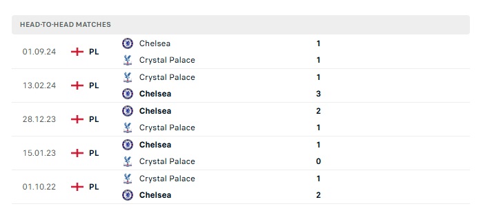 Lịch sử đối đầu Crystal Palace vs Chelsea