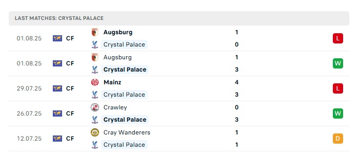 - Phong độ gần đây Crystal Palace