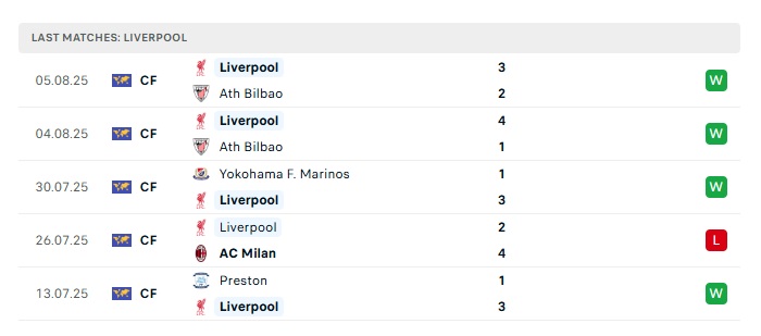 - Phong độ gần đây Liverpool