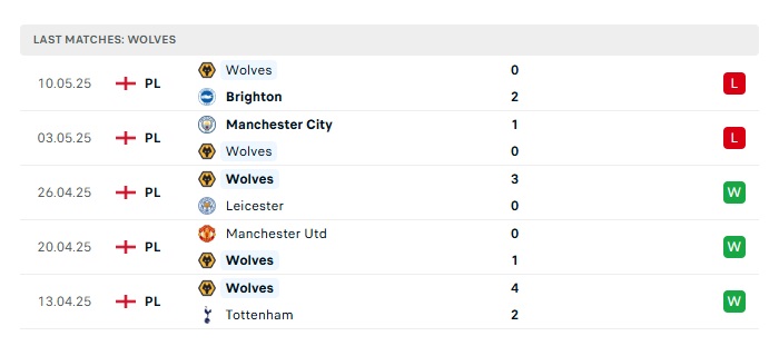 Tính trong thời gian vừa qua, cả hai đều đang không có sự ổn định khi họ hiểu rõ mình khó lòng có được những vị trí tốt hơn. Nên biết rằng Crystal Palace trong 5 vòng đấu gần nhất, họ đã có 1 chiến thắng, 1 thua và hòa 3. Trong khi đó thì Wolves đang có cho mình 3 chiến thắng và chỉ thua 2 trong 5 trận gần nhất. Như vậy, sẽ không có gì bất ngờ nếu đội chủ nhà bị cầm hòa ngày hôm nay.