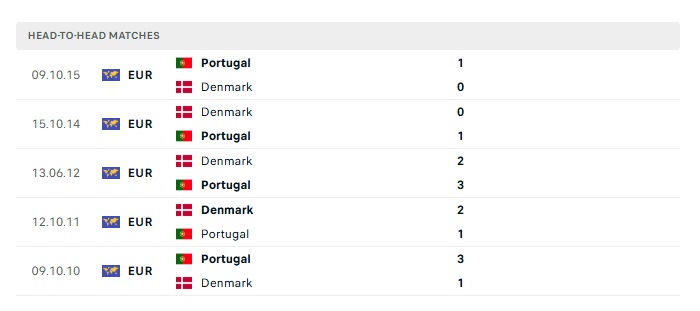 Lịch sử đối đầu Đan Mạch vs Bồ Đào Nha