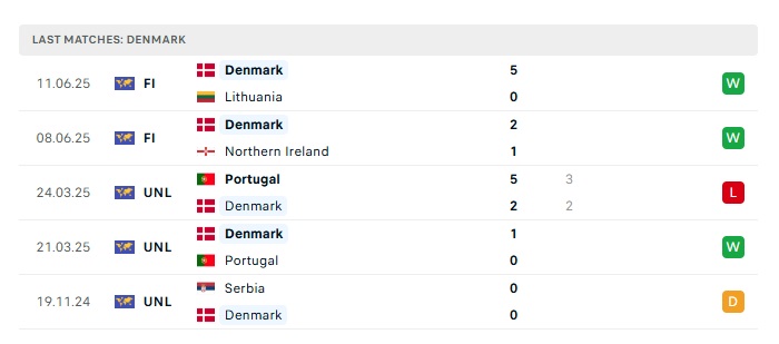 - Phong độ gần đây Đan Mạch