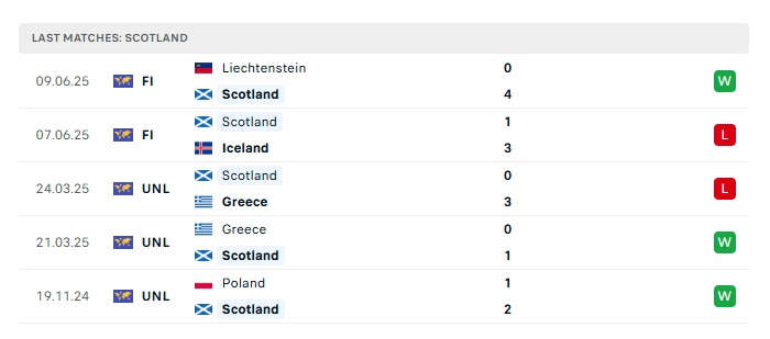 - Phong độ gần đây Scotland
