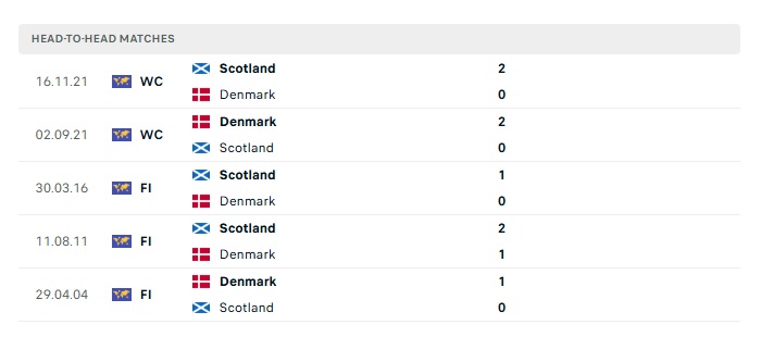 Lịch sử đối đầu Đan Mạch vs Scotland