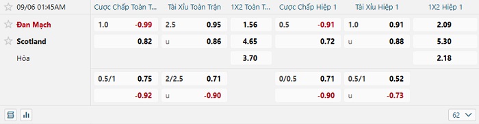 Soi kèo châu Á, kèo Đan Mạch vs Scotland