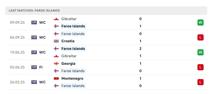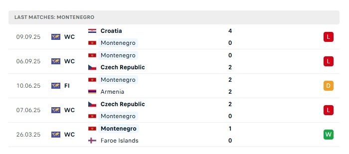 Phong độ gần đây Đảo Faroe vs Montenegro