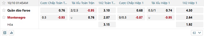 Bảng tỷ lệ kèo bóng đá Đảo Faroe vs Montenegro