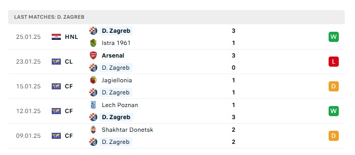 - Phong độ gần đây Dinamo Zagreb