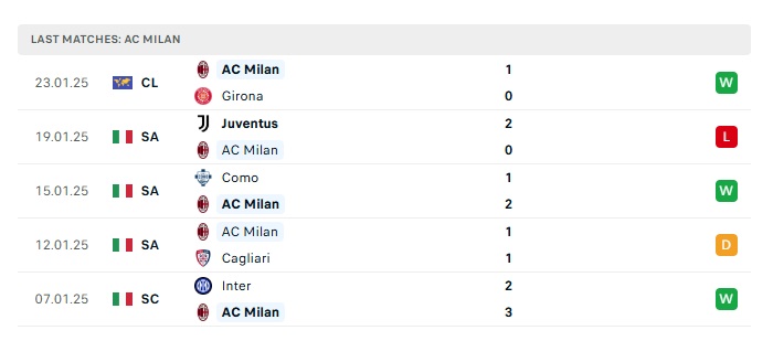 - Phong độ gần đây AC Milan