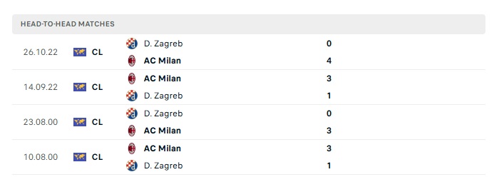 Lịch sử đối đầu Dinamo Zagreb vs AC Milan