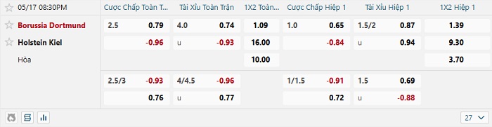 Soi kèo châu Á, kèo Dortmund vs Holstein Kiel