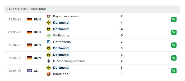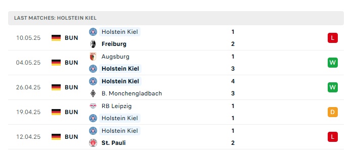 Phong độ gần đây Dortmund vs Holstein Kiel