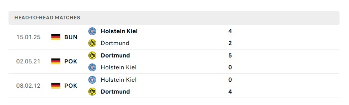 Lịch sử đối đầu Dortmund vs Holstein Kiel