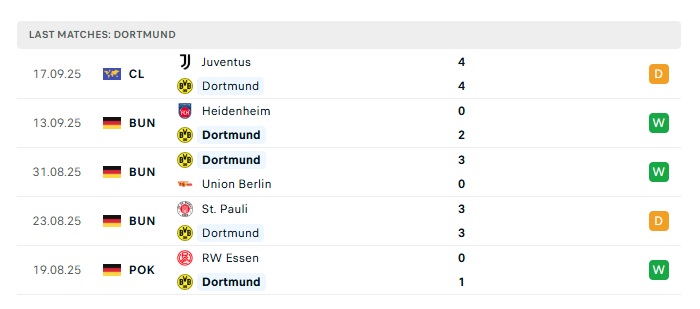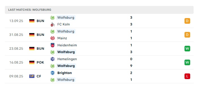 Phong độ gần đây Dortmund  vs Wolfsburg