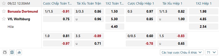 Bảng tỷ lệ kèo nhà cái Dortmund vs Wolfsburg