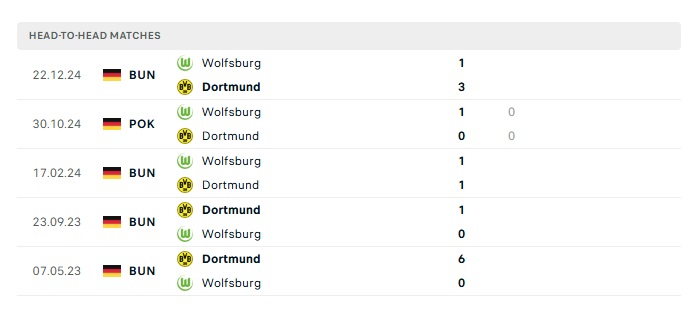 Lịch sử đối đầu Dortmund vs Wolfsburg