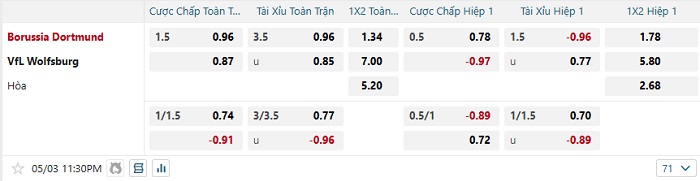 Bảng tỷ lệ kèo nhà cái Dortmund vs Wolfsburg
