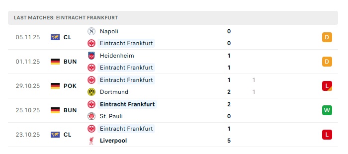 - Phong độ gần đây Eintracht Frankfurt
