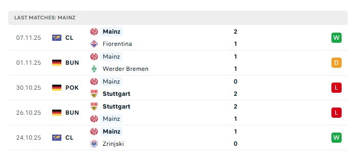 - Phong độ gần đây Mainz